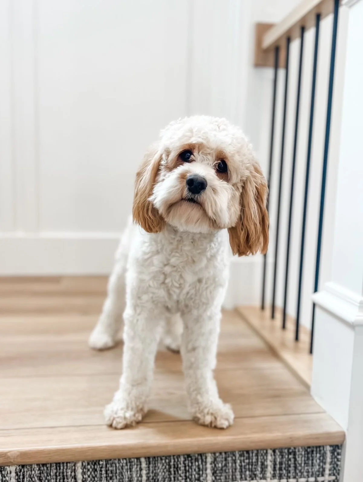 Poppy, our affectionate and gentle Cavalier King Charles Spaniel, is the ultimate lap dog—sweet, calm, and completely devoted to her people. She’s the kind of dog who will melt into your arms and bring a sense of calm wherever she goes. Scamp, our stunning Miniature Poodle, is sweet, friendly, and wonderfully intuitive. His unique coloring and gentle demeanor make him a favorite everywhere he goes.
