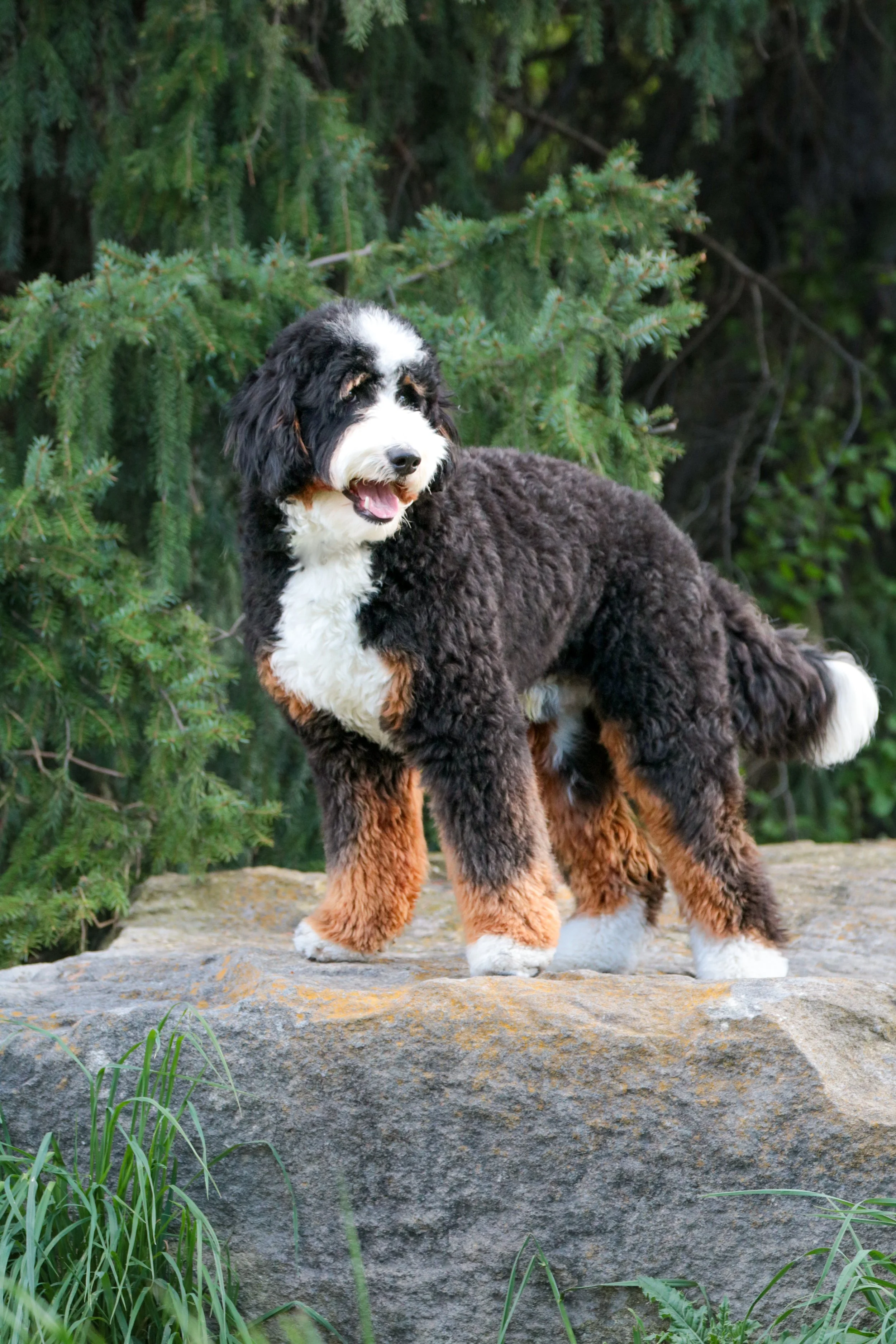 Kuzco is a service dog in training for his guardians son and has the perfect Bernedoodle temperament. He has never met a stranger and is sweet, loving, easy going, confident and has the looks to go with it! He is the perfect addition to any breeding programs genetics!